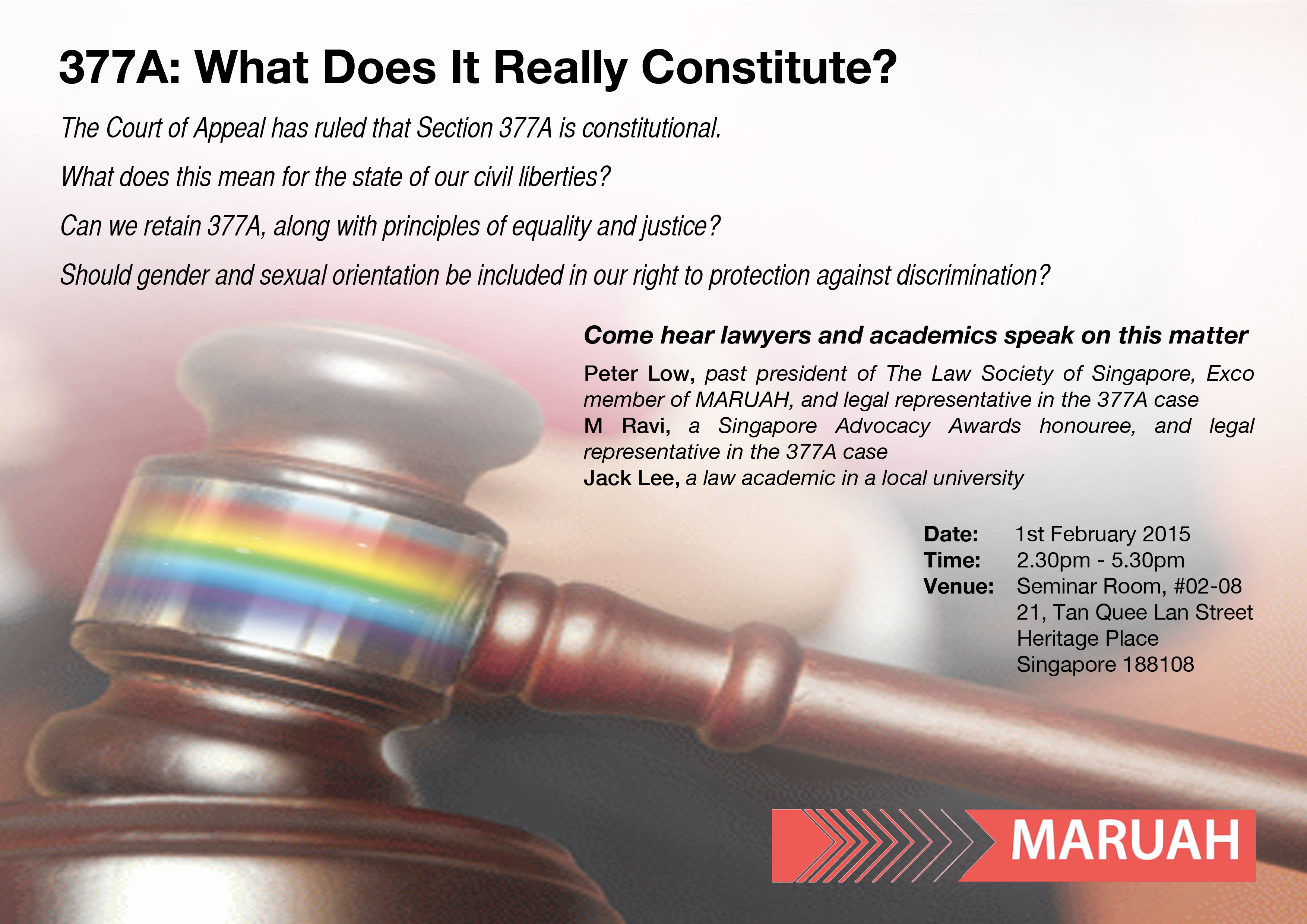 Organised by MARUAH with technical support provided by Shape SEA