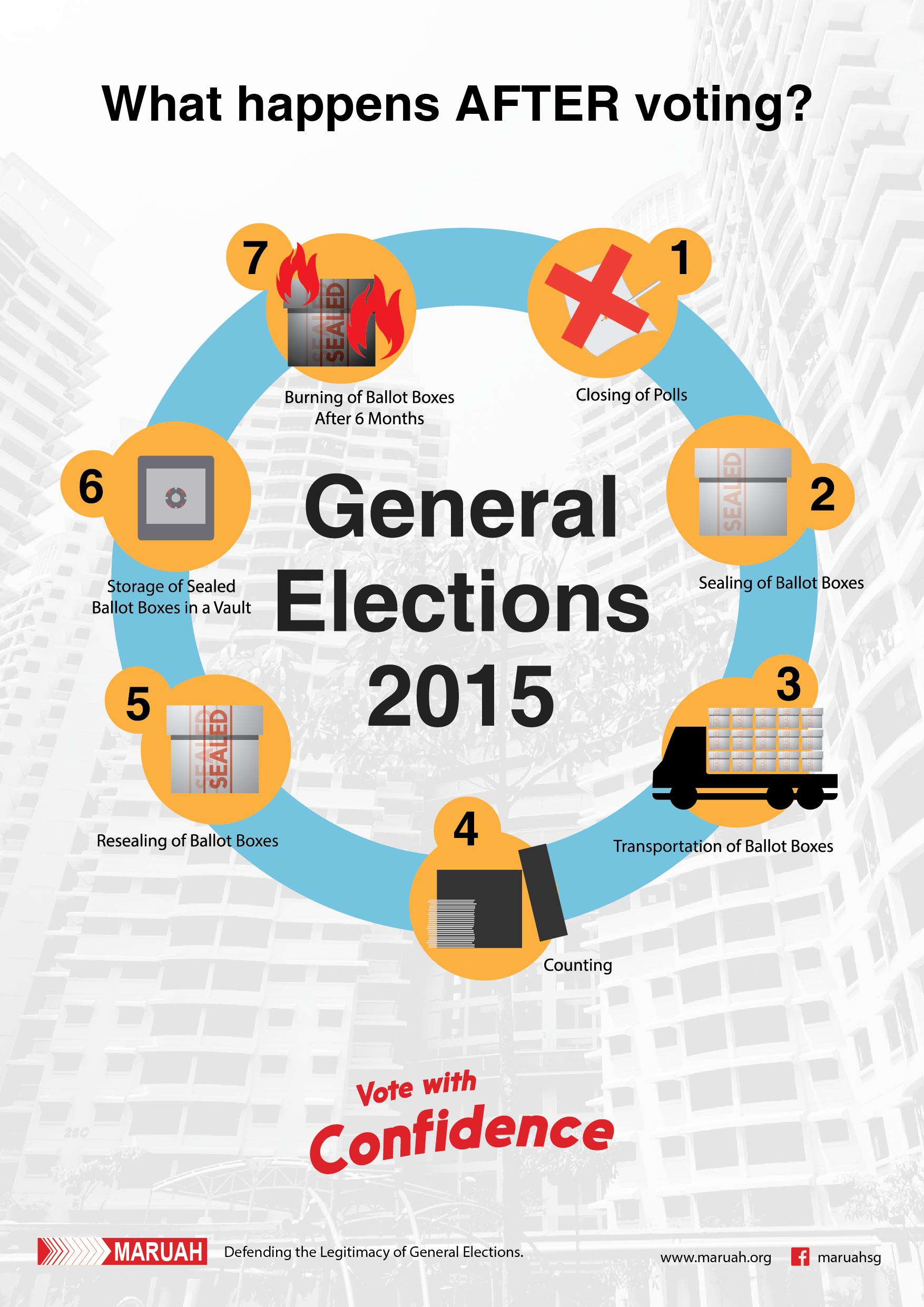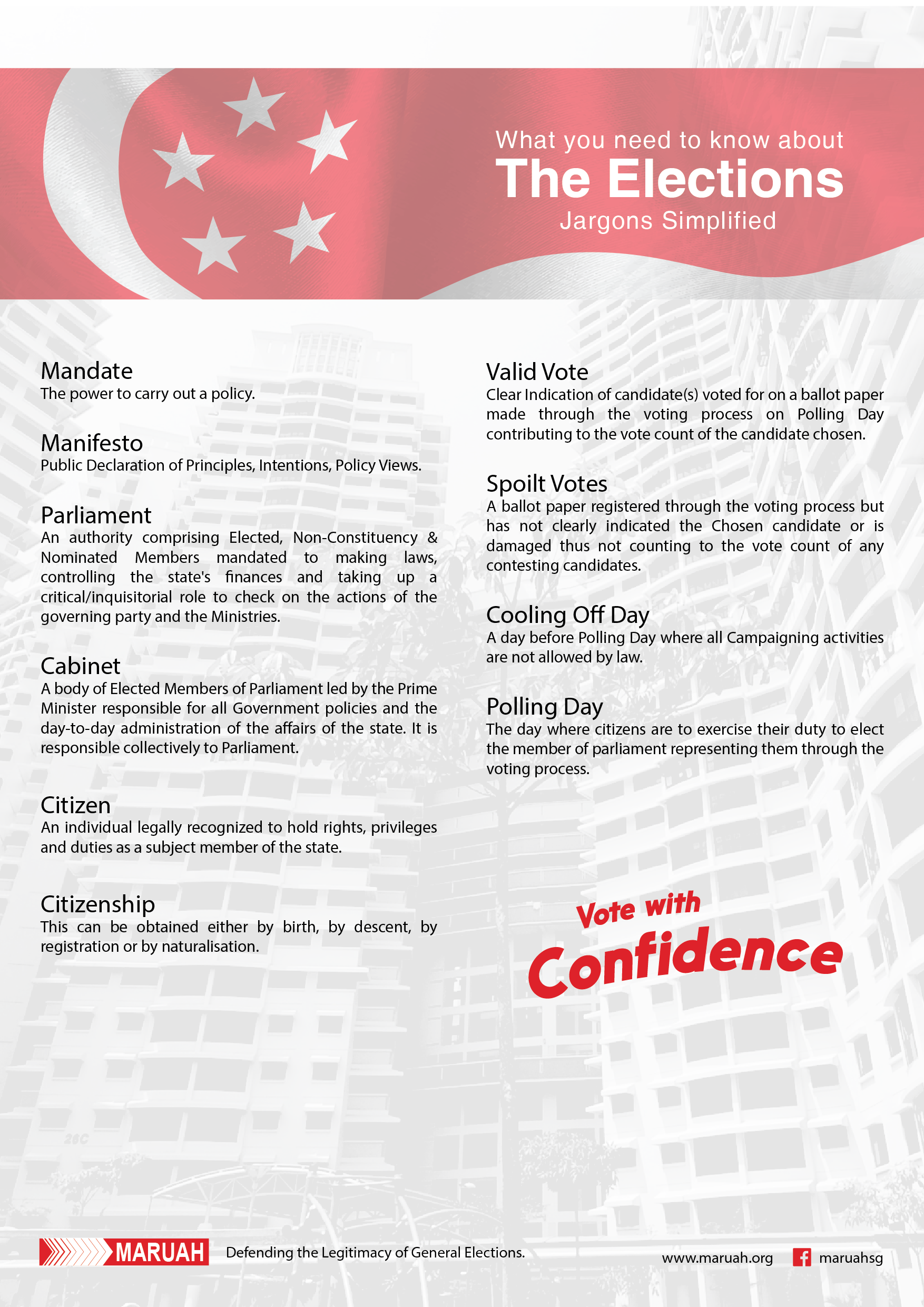 Given that the GE2015 will be held very shortly, MARUAH looks forward to working with the Elections Department to ensure that our polls are held in a free and fair manner at all levels of the electoral process. MARUAH has listed below a few areas that the Elections Department needs to pay urgent attention to.