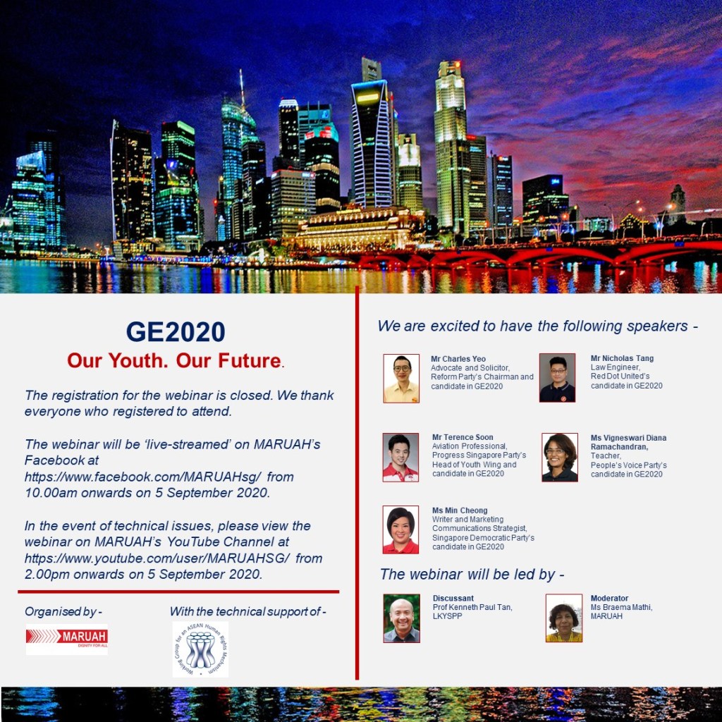 MARUAH hosted the GE2020 Post election webinar entitled “Our Youth, Our Future” this morning (5 September).